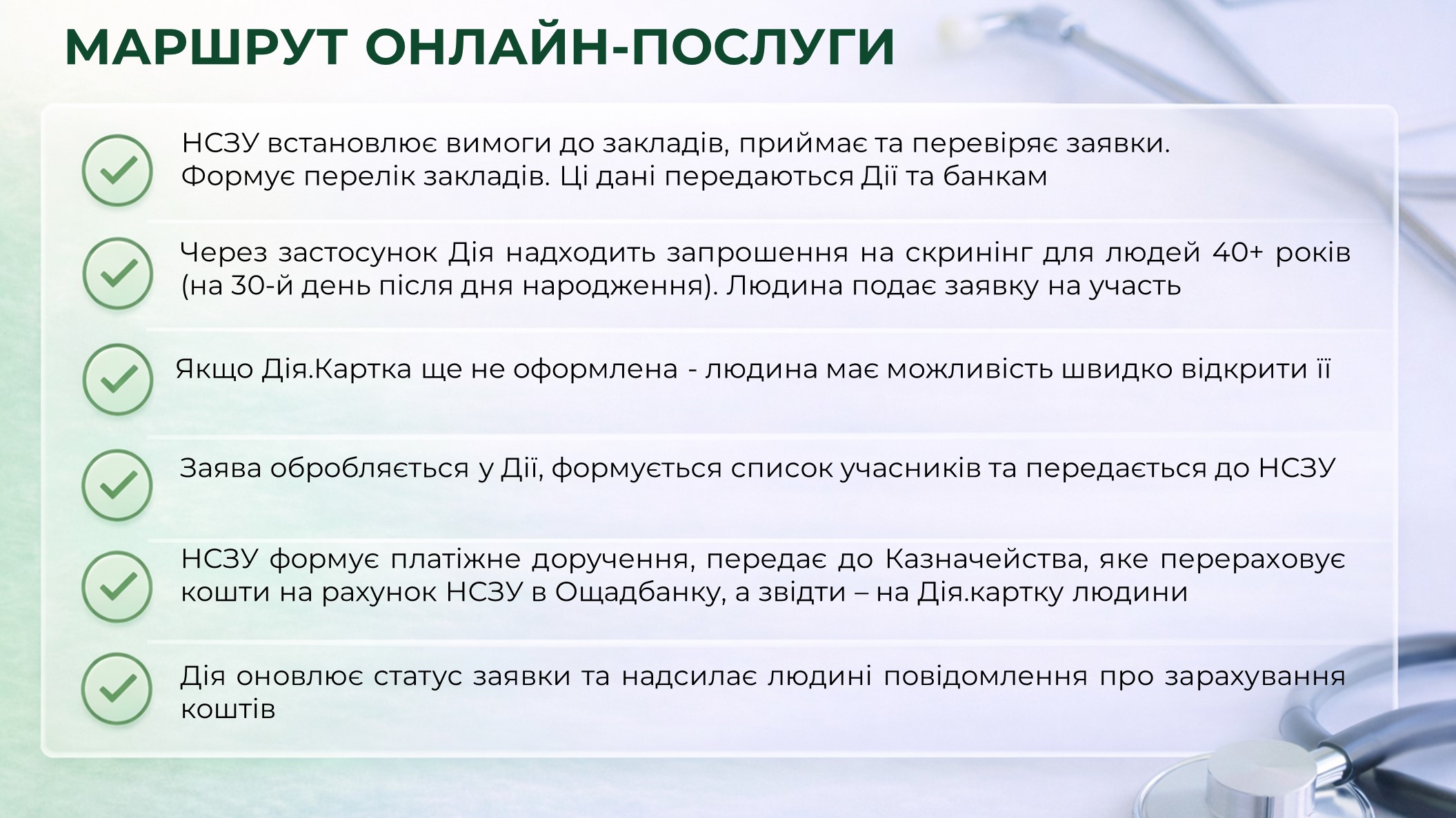 Відповіді на поширені запитання: https://screening.moz.gov.ua